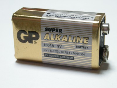 ●下記“Super ALKALINE”の旧デザイン。型番は1604Aで変わらない。こちらも電池本体には色々な型番が記載されていますが、この世代もマレーシア製の6LF22タイプ。同じくURマークも健在。使用推奨期限は「01-2012」。電池チェッカーでは満タンを指し、現在でも使用可能。 ☆アルカリ電池/マレーシア製(六角形) |