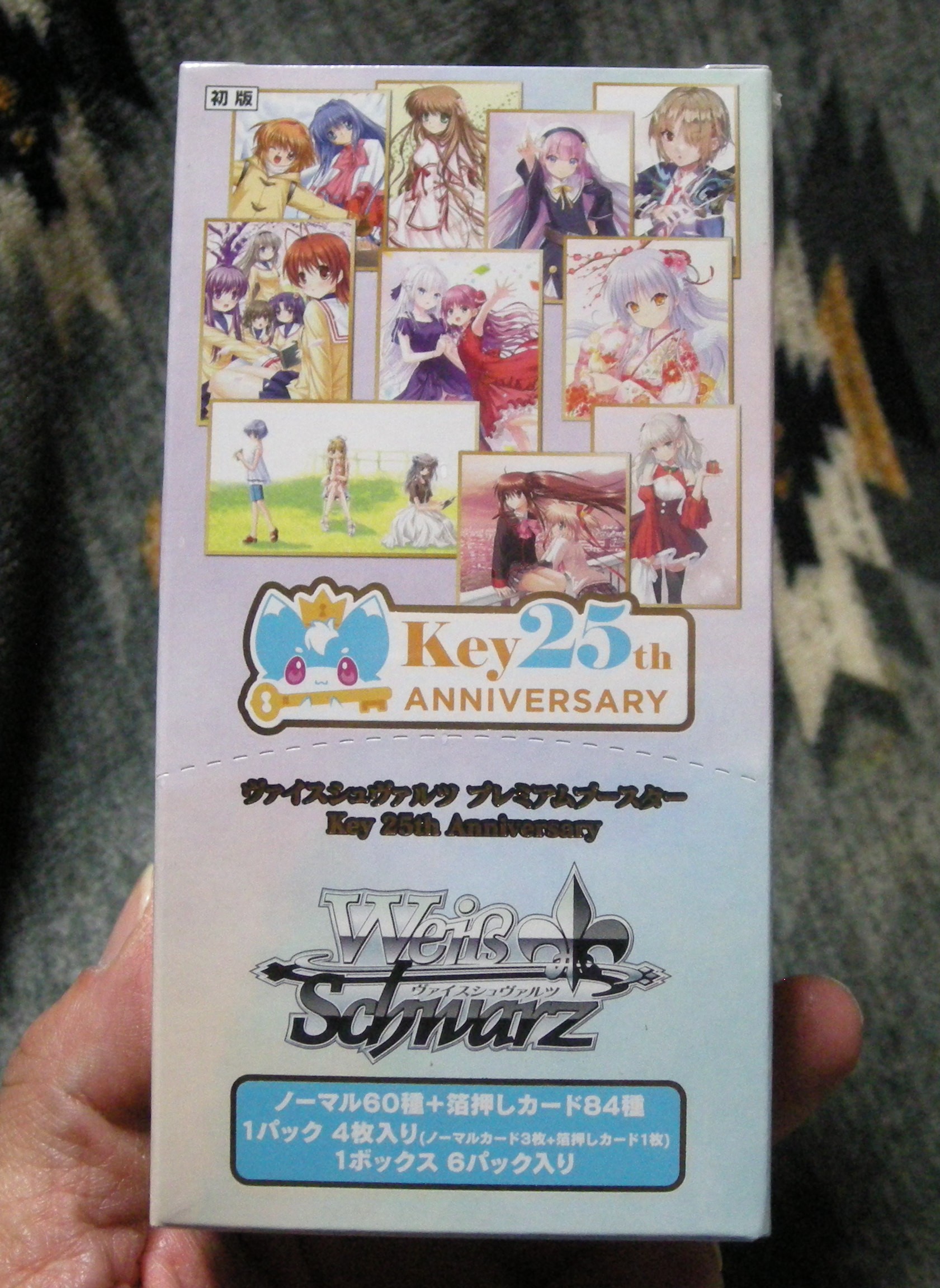 予約してた『ヴァイスシュヴァルツ プレミアムブースター Key 25th Anniversary 』というのが届きました。私はヴァイスシュヴァルツはおろか、カードゲーム自体プレイしたことがない人間なのですが、収録カードにいたる先生の描き下ろしイラストが含まれているということなので購入してみました。