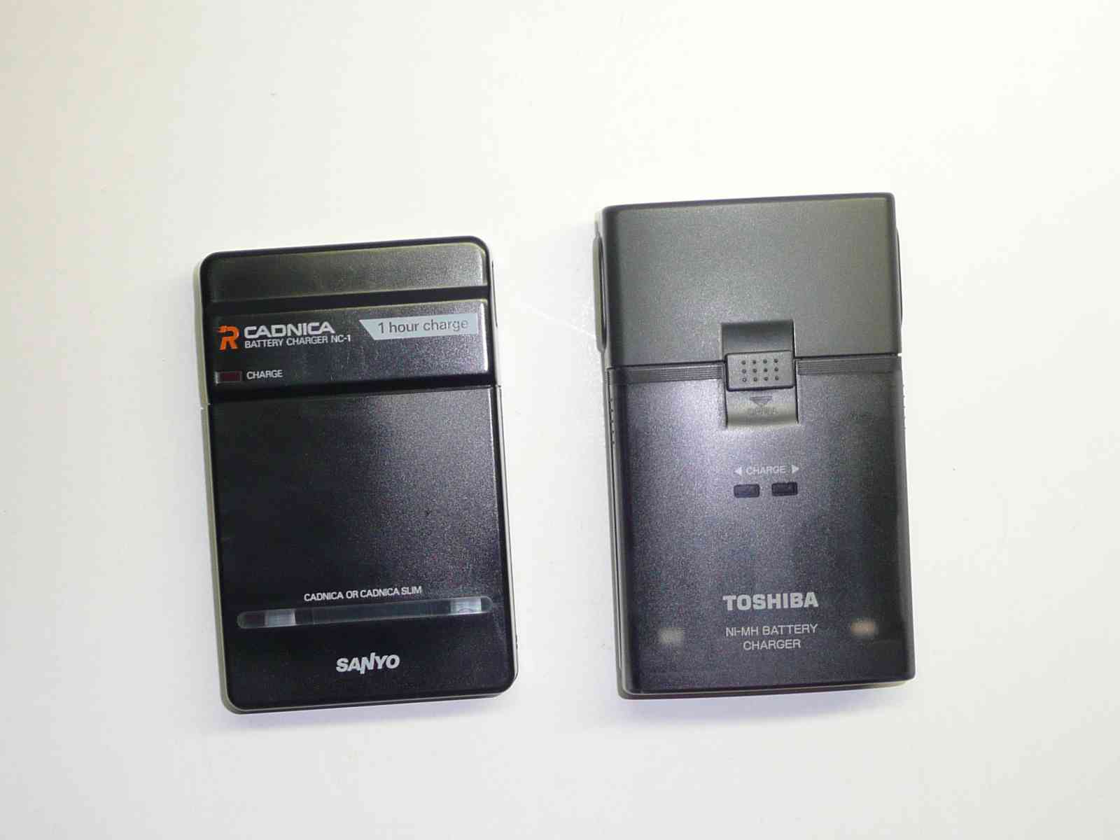 TOSHIBA:THC-39H SANYO:NC-1 東芝はニッケル水素電池(Super HYDIDE)、三洋電機はカドニカスリムでガム電池のラインナップがあったのでそのための充電器でしょう。 ちなみにこの2つは検索してもほとんど情報が出てきません。