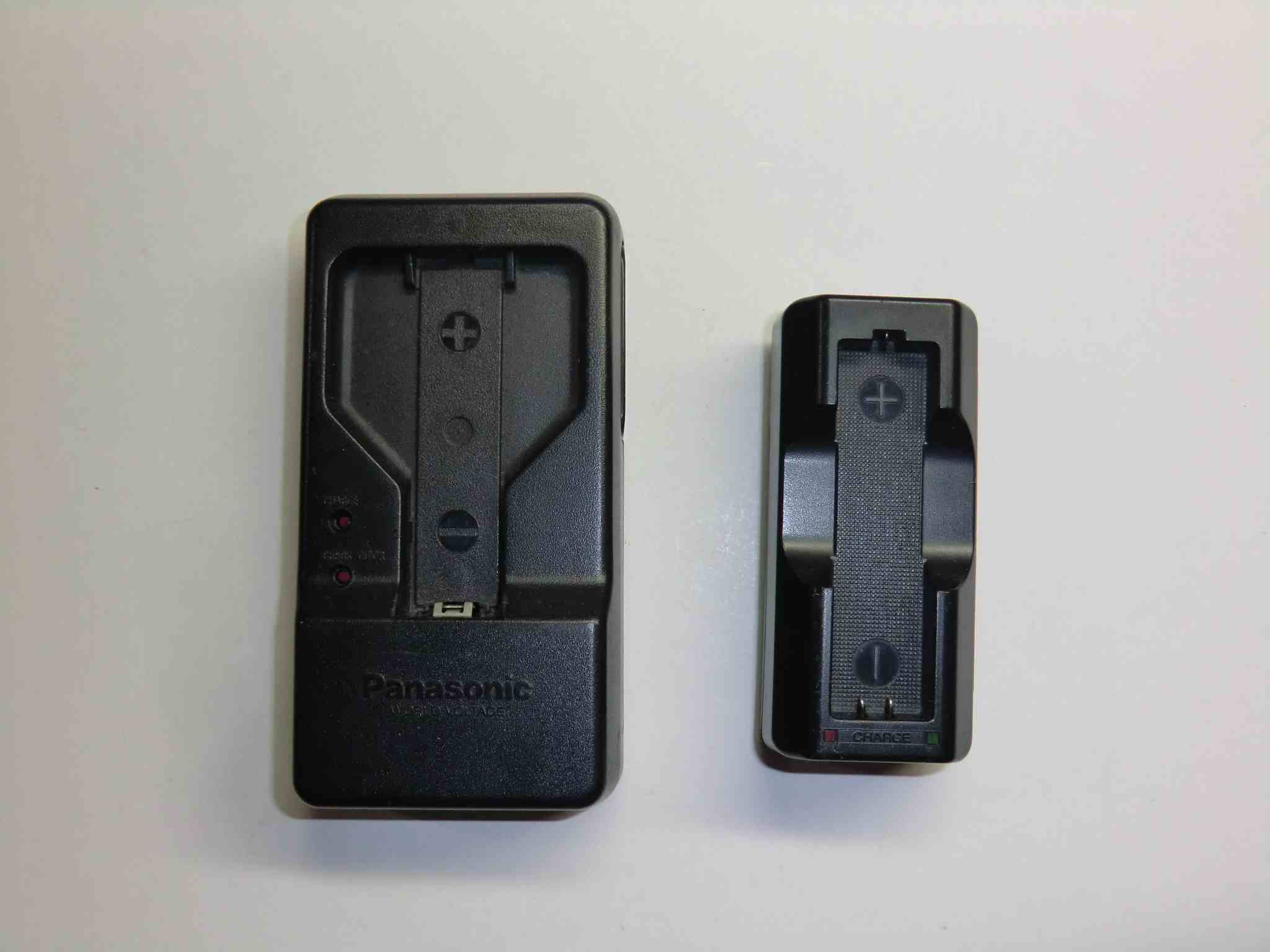 THC-39Hは820mA、NC-1は0.7Aの出力です どちらの充電器もガム電池が2本入りそうな形をしていますが、どちらもそれぞれ1本しか充電できません。どちらにも安全装置(カバーが閉まっていないと通電しない)がついています。
